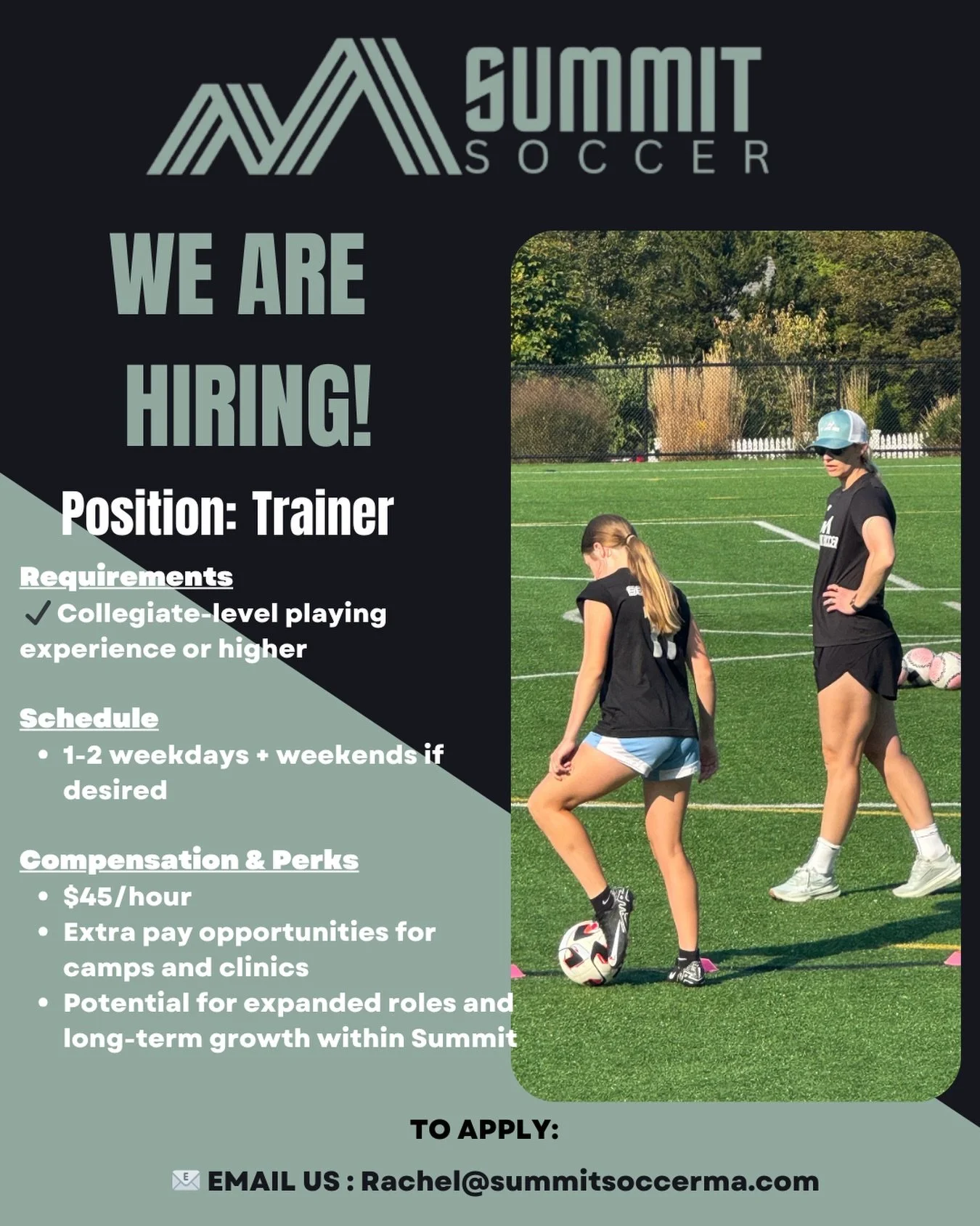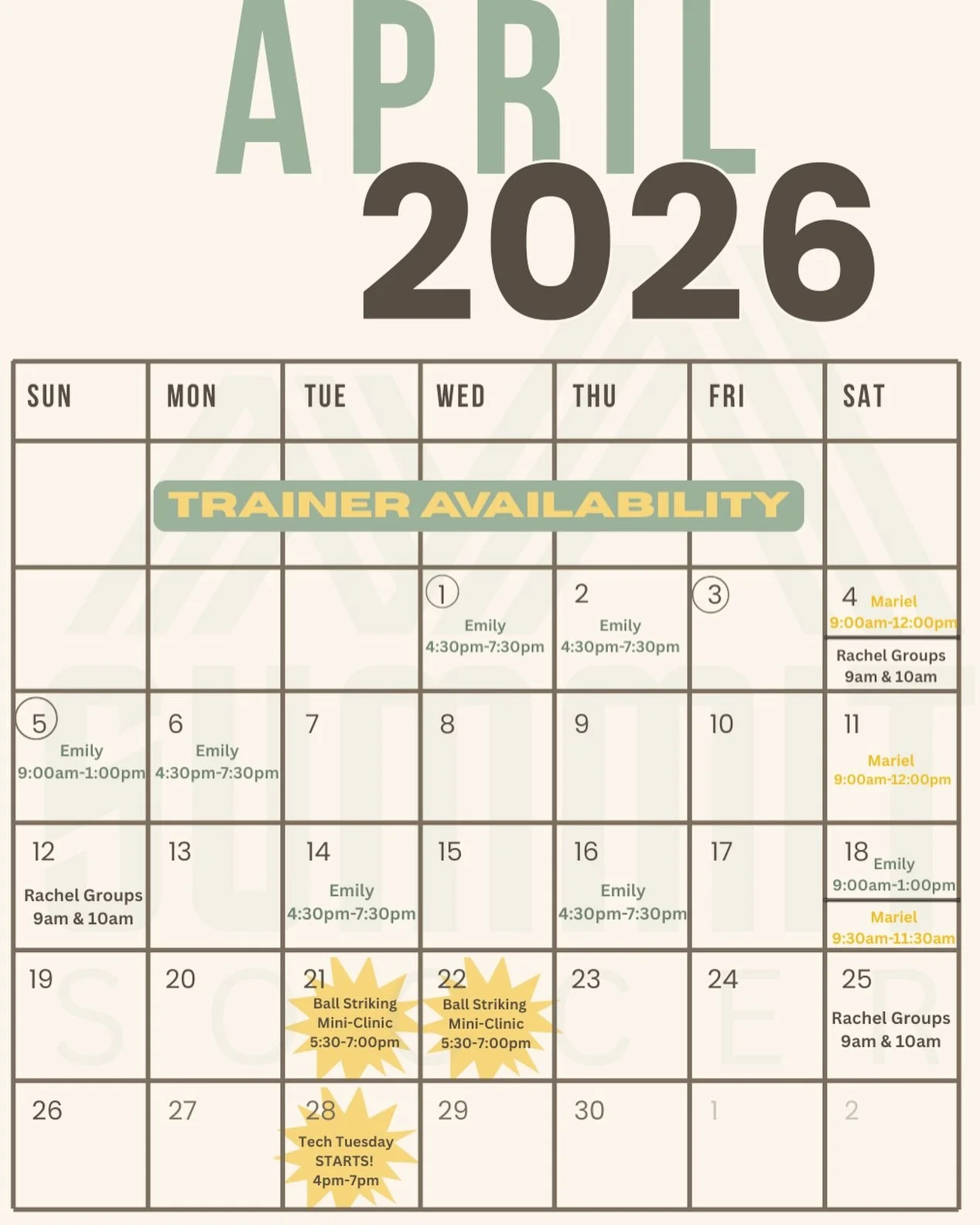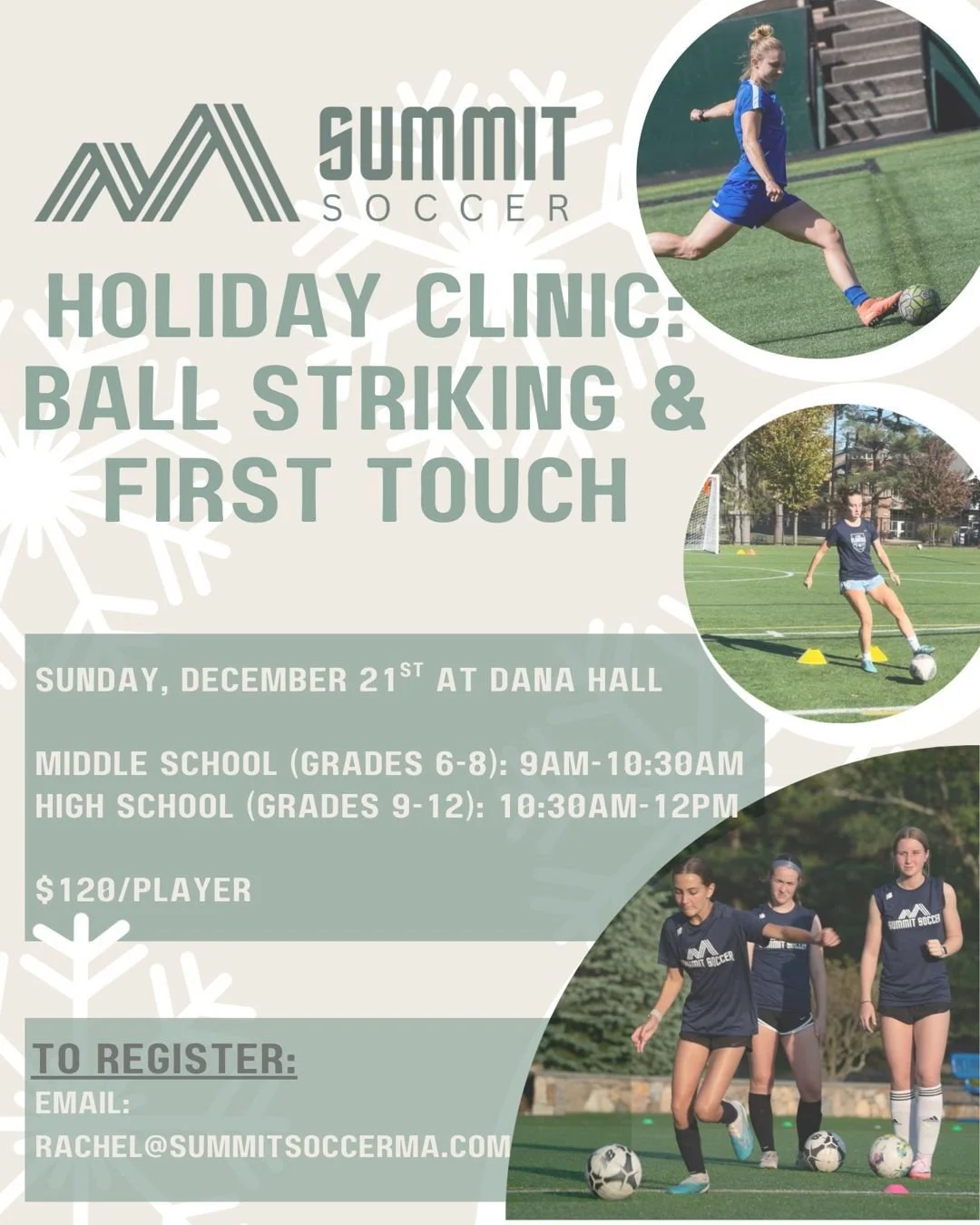 Summit Soccer Academy is a female-focused soccer organization that offers individual, small group, and large group training sessions for players of all ages and skill levels. We also provide off-field support including game film review, mental performance training, and college recruiting guidance. In addition to our player development programs, we offer on-field instruction + off-field workshops designed for players, coaches, and parents - all centered on building confidence, skill, and a lifelong love for the game.